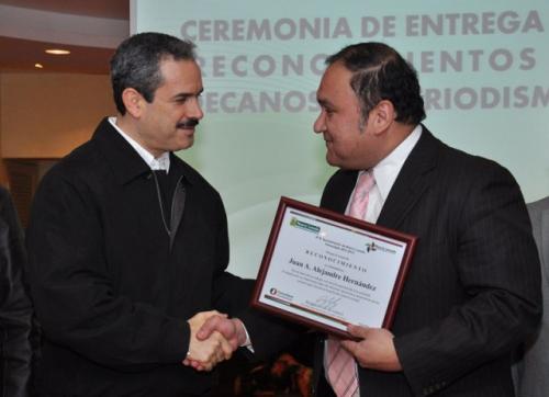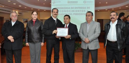 Recibieron el galardón los periodistas Gustavo Olvera Munguía, José Reyes Ayala, Jesús Valdez Gutiérrez, Pedro Edmundo Zapata Molina, Damián Aviña, Felipe Ángel Burnes Ríos, Primitivo López Herrera, Gastón Monge Estrada, Armando Arguijo González, Francisco Puchetta González, Fernando Fernández Valenzuela, Carlos Figueroa Calderón, Leonardo Herrada García, Dorita García Valdez, Susana Rivera Hernández, Santiago Palmeros Morales, y otros que recibirían el galardón durante una cena en honor a los periodistas, horas más tarde en la sala Sergio Peña.