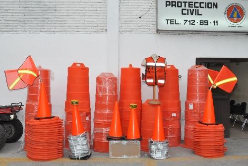 El equipamiento consiste en 150 conos de acotamiento de tránsito, 50 chalecos fluorecentes, 50 lámparas de mano, 50 banderolas de guía de tráfico y 75 trafitambos.