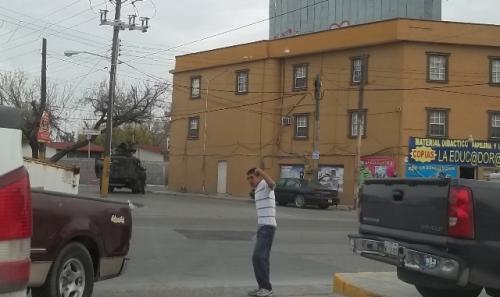 Matamoros, Tamaulipas.-Personal del Ejercito Mexicano desde temprana hora de este lunes mantiene cerrado el crucero de las calles 18 entre Guerrero y Diagonal Cuauhtémoc en el Centro de Matamoros, donde realizan una operación militar.
