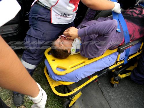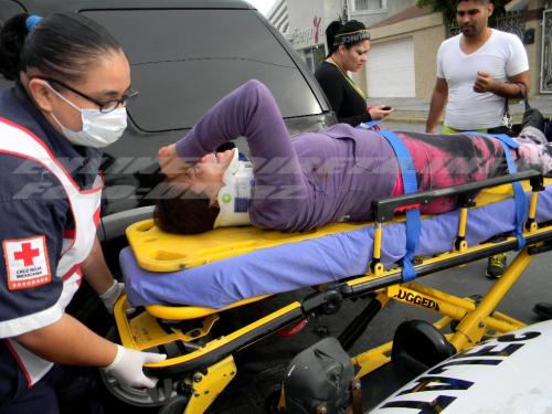 El incidente ocurrió sobre el boulevard Las Fuentes con boulevard El Maestro, de la colonia Las Fuentes, donde acudieran elementos de Tránsito y Vialidad, así como paramédicos de la Cruz Roja Mexicana, quienes atendieron a la lesionada.