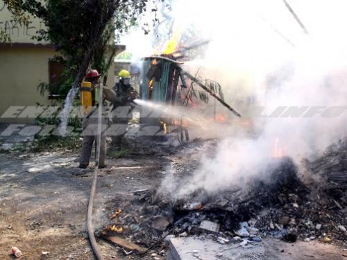 Con el apoyo de varias unidades cisternas, los bomberos rápidamente sofocaban las llamas antes que llegaran a unas viviendas contiguas, donde amenazaba con incendiarse, ya que también están construidas con material de madera y que residentes temían se fueran a quemar.