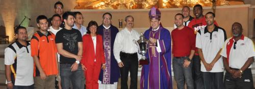 Gustavo Rodríguez Vega, Obispo de Nuevo Laredo, ofició la ceremonia, con la plantilla y directiva de los astados, quienes solo apenas unos días se proclamaron monarcas de la temporada que acaba de culminar, esto tras vencer en el sexto juego a los Halcones de Xalapa.