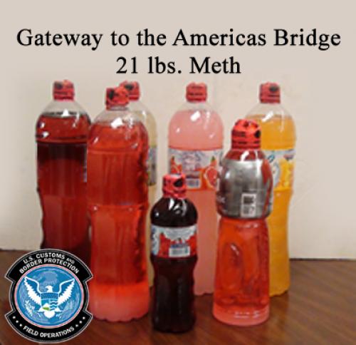 El sujeto transportaba 18 botellas de cerveza mexicana cuyo contenido eran 9.5 kilos de metanfetamina líquida, cuyo valor estimado fue de 672 mil dólares.