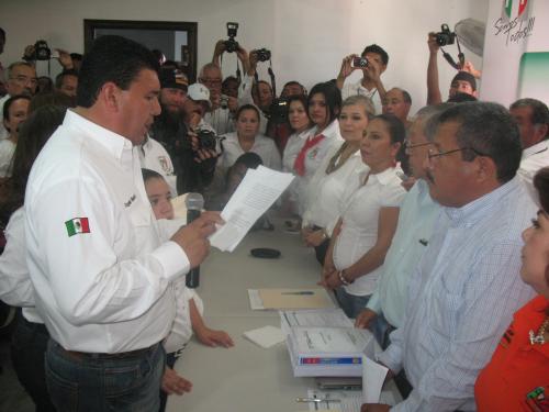 Entregó Rogelio Villaseñor toda la documentación requerida, de acuerdo a la convocatoria establecida ante la Comisiónn de Procesos Internos, y después dio su mensaje a la familia priísta presente, después de escuchar la intervención de representantes de sectores como José Luis González de la CTM; Guadalupe González López de la CNC, doctora Maribel Lira, entre otros.