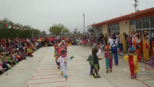 La mañana de este martes 19 de Marzo, sus maestros organizaron antesala a la primavera un circo con los niños del kínder, realizaron sus actividades como todos los días al aire libre, a la intemperie, con frio y sin protección alguna para salir a la calle.
