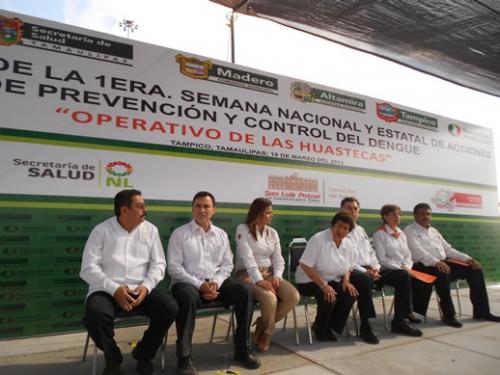 El funcionario quien estuvo acompañado de la alcaldesa de Tampico, Magdalena Peraza Guerra y el presidente municipal de Altamira, Sergio Carrillo Estrada, así como representantes de los alcaldes de Tampico Alto y Pánuco, Veracruz, dijo que el año pasado se logró contener el dengue gracias a las indicaciones del gobernador del estado Egidio Torre Cantú, pero en este momento es necesaria la participación de la población.