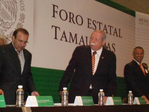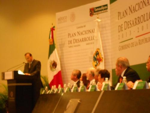 Tampico, Tamaulipas.-Bajo estrictas medidas de seguridad se está desarrollando el foro Estatal de Consulta Tamaulipas para elaborar el Plan Nacional de Desarrollo 2013- 2018, presidido por el gobernador del Estado, Egidio Torre Cantú y Alfonso Navarrete Prida, representante personal del Presidente de la República y secretario del Trabajo y Previsión Social, quien destacó que Enrique Peña Nieto le apuesta a lograr un México en paz.