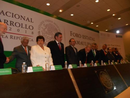 El evento se está realizando en el Centro de Convenciones y Exposiciones de Tampico, en donde están presentes los alcaldes de Tampico, Magdalena Peraza Guerra, de Madero, Jaime Turrubiates, de Altamira, Pedro Carrillo Estrada y funcionarios de diversas dependencias federales, estatales y municipales.