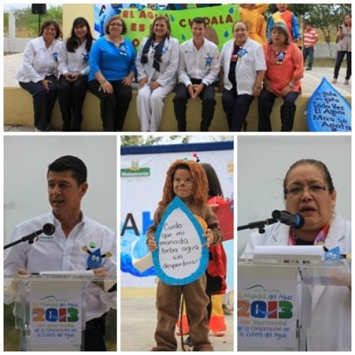 Matamoros, Tamaulipas.- La Junta de Aguas y Drenaje de la ciudad de Matamoros seguirá fomentando la cooperación entre los diversos actores de nuestra sociedad, con el objetivo de promover y crear conciencia sobre el uso y aprovechamiento sustentable del agua, afirmó Gerardo Guerra Astudillo, gerente general del organismo, al participar en el acto conmemorativo del Día Mundial del Agua.