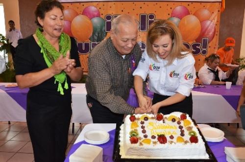 Brindar alegría y una sana convivencia fue el objetivo del festejo que se realizó en honor de los cumpleañeros del mes de Marzo que están inscritos a la Casa Club del Adulto Mayor así como a los hospedados en el asilo “Vida y Esperanza”, por parte del Sistema para el Desarrollo Integral de la Familia en Nuevo Laredo, presidido por la señora Martha Alicia Aldapa de Galván, quien siguiendo con la mística de trabajo de la presidenta del DIF Tamaulipas, señora María del Pilar González de Torre, dan a una mejor calidad de vida a los adultos mayores.