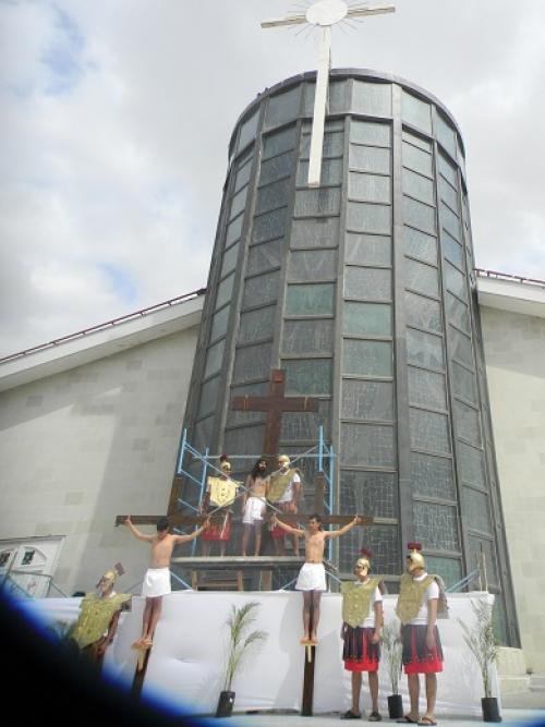 Inició a las 10:00 horas en el cruce de esta avenida con Ruiz Cortines, y terminó más de dos horas después en la catedral del Espíritu Santo, en donde unas 500 personas estuvieron atentas desde el inicio de esta representación, la primera para Marcos, y la quinta para el obispo Gustavo Rodríguez Vega, quien asumió el cargo el 19 de noviembre del año 2008.