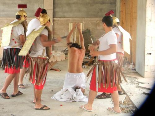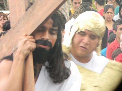 Nuevo Laredo, Tamaulipas.- La avenida Paseo Colón, una de las más importantes de la ciudad, se convirtió durante más de dos horas en el camino que recorrería Marcos Martínez, un estudiante de la Escuela Normal, en la representación de Vía Crucis que Jesús de Nazarteh vivió antes de ser crucificado.