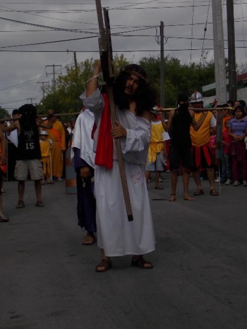 Reynosa, Tamaulipas.-Nuevamente como hace dos mil años según la tradición católica se escenificó el Viacrucis de Jesús, ahora desde las calles de Reynosa por las colonias populares, en donde miles de fieles reynosenses recordaron la vida y pasión de Jesucristo, recordando su sufrimiento, condena y muerte en la cruz.