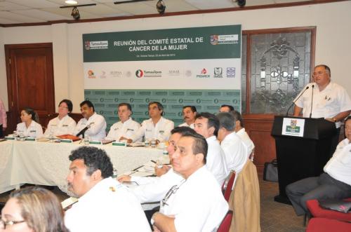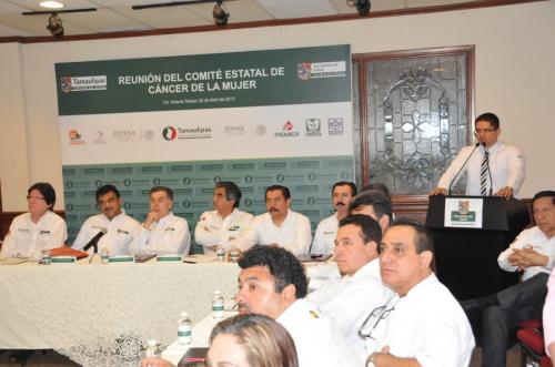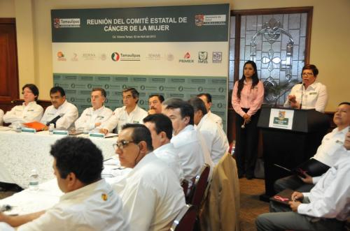 CD. VICTORIA, Tamaulipas.- Para conocer los avances, los retos y el panorama epidemiológico actual del cáncer de la mujer en Tamaulipas, el gobierno de Egidio Torre Cantú, efectuó la primera reunión del 2013 entre las instituciones que conforman el sector salud como son IMSS, ISSSTE, PEMEX, Secretaría de la Defensa Nacional y la Secretaría de Marina.