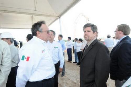 El Secretario de Desarrollo Urbano y Medio Ambiente, Humberto René Salinas Treviño, dio una explicación del proyecto al funcionario del gobierno estadunidense, que fue uno de los invitados especiales al arranque de la construcción del parque eólico El Porvenir.