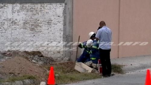 Al lugar arribaron varias unidades de Protección Civil y Bomberos, quienes acordonaron rápidamente el sector y revisaron una tubería de la empresa Maxigas, la que había sido rota por trabajadores de la construcción que estaban realizando excavaciones en un predio, informó el Primer Comandante de Protección Civil y Bomberos, Alfredo Martínez.