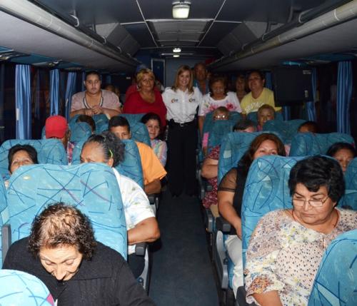 El banderazo oficial de salida de los dos autobuses correspondientes, fue realizado por la presidenta del Sistema DIF Municipal, señora Martha Alicia Aldapa de Galván.