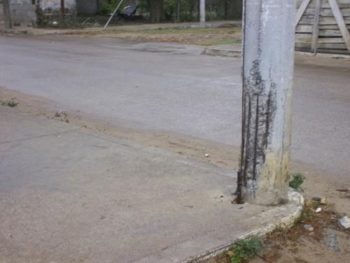 Así lo comenta la señora Rosario Guerrero Jara quien asegura que de la base ya no cuenta con concreto y el poste se encuentra ladeado desde hace aproximadamente un mes. Día y tarde personas que caminan por la banqueta y conductores se encuentran expuestos a sufrir un accidente debido a que la comisión federal de electricidad no ha puesto atención a su instalación deteriorada, inclusive afirma que en varias ocasiones trabajadores de la comisión federal de electricidad pasan por donde se encuentra el poste caído y no se detienen por lo menos a observar el daño en su base.