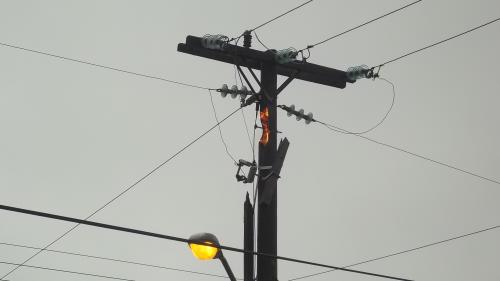 Matamoros, Tamaulipas.-Con el ingreso del Frente Frio No. 40 a la región, la contaminación que tienen los troncales, ramales y las líneas de conducción de energía de la Comisión Federal de Electricidad, y la lluvia diminuta que se presenta ha provocado que muchos postes de madera más de 10 en la ciudad se han incendiado.