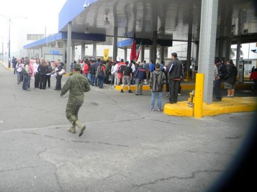 A diferencia de otras marchas, la del SME ingresó a las instalaciones del puente internacional y bloqueó el libre tránsito de los vehículos, al llegar hasta las casetas de cobro, por lo que en el lado norteamericano del puente, las autoridades de Aduanas y Protección Fronteriza, solicitaron el apoyo de la fuerza pública para atender alguna eventualidad que pudiera salirse de control, por lo que el tránsito fue suspendido.
