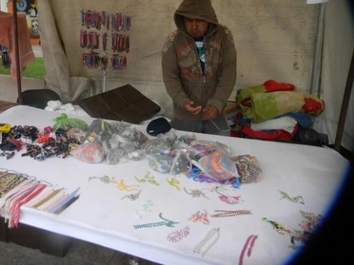 Uno de los vendedores, tímido y desconfiado, descargaba algunos delos productos que serán vendidos en los próximos días, pero se negó a hablar, aunque sobre el mostrador comenzaba a colocar algunas prendas artesanales.