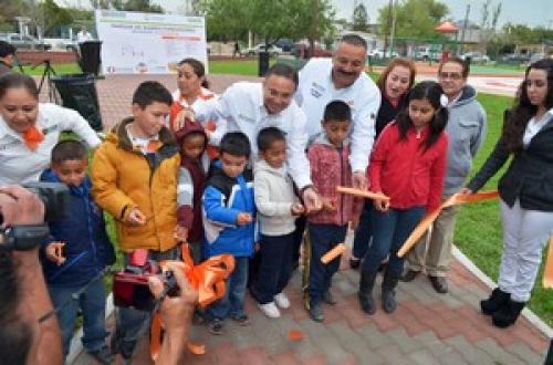 RÍO BRAVO, Tamaulipas.- Con la representación del Gobernador Egidio Torre Cantú, el Secretario de Desarrollo Social del estado, Homero de la Garza Tamez, encabezó la apertura del parque de barrio de la colonia Fundadores de este municipio, el cual tiene como finalidad mejorar las condiciones de vida de las familias, a través de la sana convivencia.