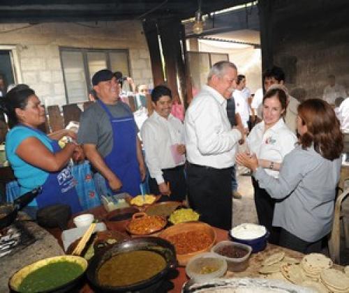 JAUMAVE, Tamaulipas.- Previo a la inauguración del festival del altiplano en su tercera edición, el Gobernador Egidio Torre Cantú y su esposa María del Pilar González de Torre, comieron en el local de las famosas gorditas “Don Pedro”, en donde fueron atendidos por el propio Pedro Báez Vázquez, de 72 años. Disfrutaron las picantes gorditas de costillita, queso enchilado, chorizo con huevo y más guisos, todas hechas a la leña. Lo acompañaron los cinco alcaldes de la región del altiplano, Jaumave, Tula, Bustamante, Palmillas y Miquihuana.