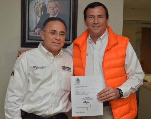 REYNOSA, Tamaulipas.- A nombre del Gobernador Egidio Torre Cantú, el Secretario de Desarrollo Social del Estado, Homero de la Garza Tamez, entregó nombramientos al nuevo coordinador de la Sedesol Estatal y al delegado del Instituto Tamaulipeco de Vivienda y Urbanismo, en este municipio.