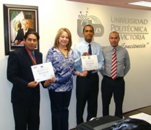 CD. VICTORIA, Tamaulipas.- Destacados miembros del cuerpo académico de la Universidad Politécnica de Victoria (UPV) recibieron de la rectora Sonia Maricela Sánchez Moreno, merecidos reconocimientos y felicitaciones por sus excelentes actividades desarrolladas en los primeros cuatro meses del año en curso, en donde pusieron en alto el nombre de esta institución de educación superior.