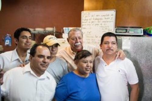 Fue este mesero quien durante el desayuno le solicitó al Gobernador, a nombre de sus compañeros, que se tomara una foto con su personal al finalizar su visita y el mandatario volvió a sorprender a todos al dirigirse “hasta la cocina” a buscarlos para la fotografía y felicitarlos por su trabajo.