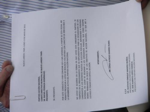 En el documento que fue leído por Ramírez Rubio, se menciona que la renuncia es voluntaria e irrevocable a la membresía de dicho partido, y el destinatario fue el presidente del dicho partido, a quien le dijeron los renunciantes no estar de acuerdo en la forma en que lo dirige, ni en el procedimiento implementado para la designación de los candidatos a cargos de elección popular, de los que dijo, son de extracción priista.