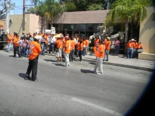 Nuevo Laredo, Tamaulipas.-El candidato del partido Movimiento Ciudadano, Francisco Chavira Martínez, realizó una manifestación frente a las instalaciones de la Comapa, con la finalidad de protestar por lo que considera altos costos en el cobro de este servicio a la población.