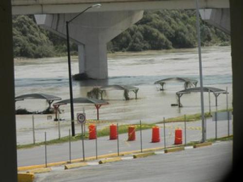 Nuevo Laredo, Tamaulipas.-Sin lluvia y con una temperatura superior a los 35 grados centígrados, el río Bravo se desbordó e inundó las partes más bajas de la ciudad, al alcanzar durante la ‘cresta’ de su afluente, a las 05:30 horas del lunes, 7 metros con 30 centímetros de altura, cuando el promedio es de solo 80 centímetros de profundidad.