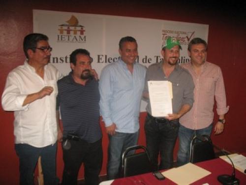 Rogelio Villaseñor Sánchez y Juan Diego Guajardo Anzaldúa, candidatos de la Coalisión “Todos Somos Tamaulipas” PRI-PVEM-PANAL, llegaron acompañados de un sinnúmero de seguidores que los felicitaron al recibir el documento correspondiente.