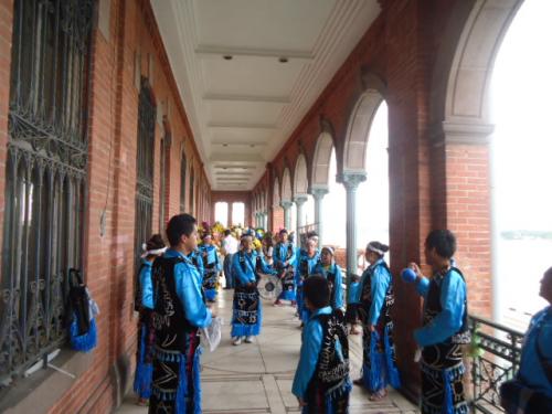 Y en los diferentes pasos hacían paradas por breves minutos, las autoridades enviaban el saludo a las familias y los danzantes honraban a la virgen, así prosiguieron hasta las escolleras en Playa Miramar, para rendir culto ante el monumento a la Patrona de marinos y pescadores.
