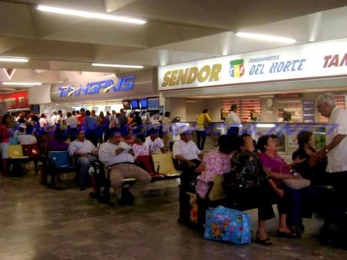 Reynosa, Tamaulipas.-Cientos de personas aprovechan para salir de la ciudad, por lo que en la Central de Autobuses, sigue registrándose una fuerte afluencia de pasajeros que sale a los diferentes estados de la República con fines de vacacionar o visitar a sus familiares.