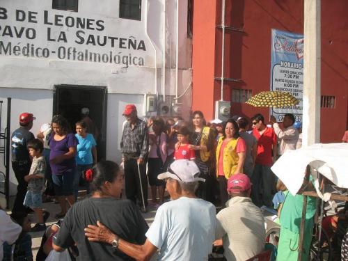 Y, hay que destacar que se formaron largas filas de personas, principalmente minusvalidos, de la tercera edad, madres de familias solteras, y hasta estudiantes, para recibir su despensa y además participar en la campaña oftalmológica y donación de lentes.