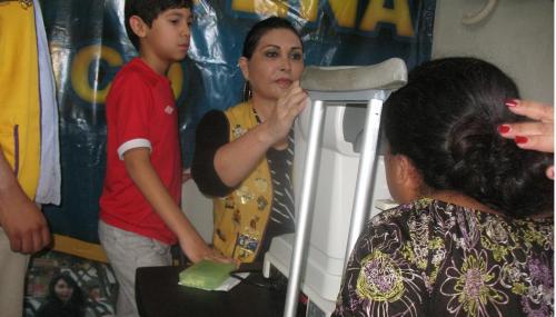 Río Bravo, Tamaulipas.– Como sucede cada semana la señora Nohelia Cantú de Millán, Presidenta del Club de Leones Río Bravo “La Sauteña”, presidió la entrega de despensas y además la campaña oftalmológica y entrega de lentes a personas con problemas en la vista, previo estudio especializado a través de sofisticado sistema de cómputo.