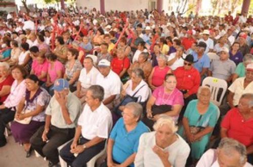 El alcalde Everardo Villarreal efectuó la entrega de presentes y apoyos sociales a los adultos mayores que participan en los diversos clubes del adulto mayor.