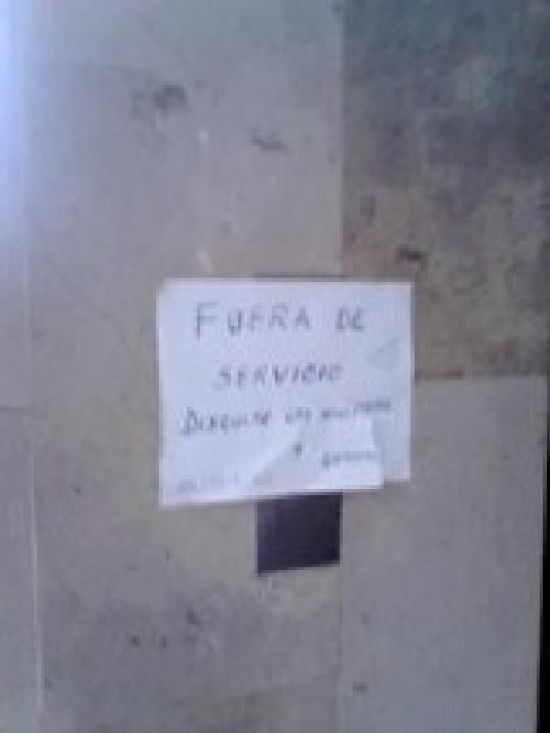 Un burdo mensaje escrito a mano da fe de esta falla que durante muchos días obligó a los pacientes a subir escaleras a costa de su salud, y lo seguro es que las fallas continúen debido a que la mayor parte del presupuesto destinado para este año, ya se utilizó en las ‘mejoras’ realizadas al inmueble.