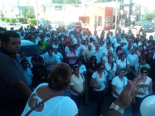 Matamoros, Tamaulipas.-Un promedio de doscientos maestros adheridos al Sindicato Nacional de Trabajadores de la Educación, han arrancado con protestas pacificas en el Edificio de la Sección XXX del SNTE en Plan de Ayutla y España.