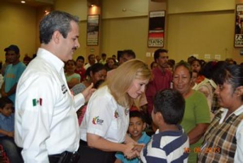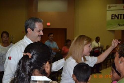 La niña Valeria Acosta Vallejo recibió de manos del alcalde y de su esposa Marta Aldapa, la primera tarjeta de débito, en representación de los alumnos que asistieron a dicho evento, y su mamá, Olga Oralia Vallejo Olvera, dio un mensaje de agradecimiento por haber recibido su hija este importante apoyo.