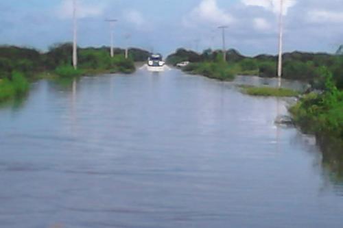 Hasta el momento se tiene antecedente que solo pueden cruzar vehículos pesados o 4 X 4, autos pequeños no pueden circular debido a que el agua ha rebasado 60 centímetros de la carpeta asfáltica.