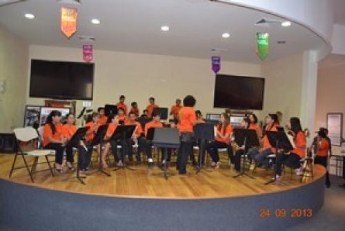 Luego del discurso, la banda musical de niños estudiantes realizó unas estupendas interpretaciones musicales, y después la cantante Saraí ofreció una muestra de porqué se encuentra entre los semifinalistas del evento en la ciudad de México.