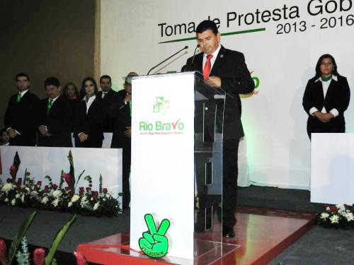 Río Bravo, Tamaulipas.–En un marco de plena unidad, con la certeza y seguridad de que trabajando unidos, se puede construir un Río Bravo mejor, rindió protesta como presidente municipal Rogelio Villaseñor Sánchez correspondiente al periodo 2013-2016.