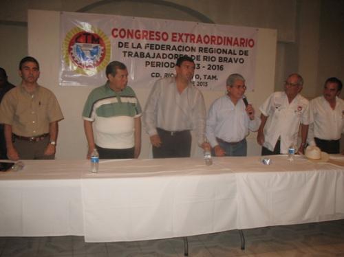 Río Bravo, Tamaulipas.– Este domingo José Reséndez Pozos, al rendir protesta de ley como Secretario General de la Federación Regional de Trabajadores de Río Bravo (FRTRB), dijo que después de tantos años, “por fin se vio lo que todos queriamos, estar unidos para sacar adelante los trabajos de la central obrera, en beneficio de todos..”.