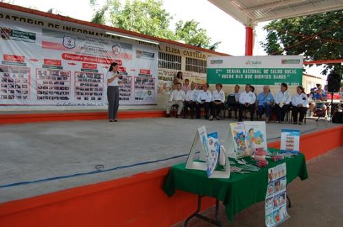 Tampico, Tamaulipas.-Ante autoridades municipales y educativas, la Jurisdicción Sanitaria No. II inauguró hoy la segunda semana nacional de salud bucal en la Escuela Primaria Venustiano Carranza, en donde se colocó la primera piedra de la clínica dental que construirá Club Rotario Tampico Campestre.