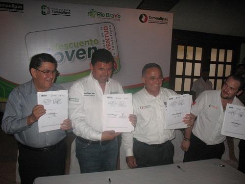 Río Bravo, Tamaulipas.– Tras reiterar todo el apoyo del gobierno municipal a los jóvenes, el Presidente Municipal Rogelio Villaseñor Sánchez, destacó el respaldo que brinda el gobernador Egidio Torre Cantú a los jóvenes de Tamaulipas y participó en la firma de convenio entre los líderes estatal y municipal del ITJUVE; el rector de la Universidad Tamaulipeca el doctor Oscar W. Aguilera Rodríguez y el licenciado Homero de la Garza, Secretario de Desarrollo Social en Tamauiapas.