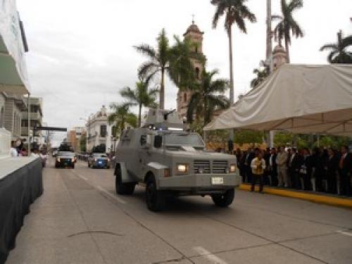 La gente pudo apreciar el vehículo blindado Alacrán diseñado y fabricado en Brasil, concebido como unidad de transporte de tropas, diseñado para incursiones en ambientes hostiles tales como rescate de rehenes, neutralización de artefactos explosivos y sucesos en ambientes de combate, con su blindaje nivel 6 que soporta disparos de arma de gruesos calibres; además, como parte de su poder disuasivo cuenta con una ametralladora de 50 milímetros y un vehículos pick up para misión de reconocimiento y patrullaje con dotación para 8 elementos, con una ametralladora calibre 7.62.