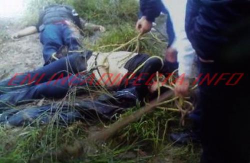 A apersonarse en el lugar personal de la Policía Ministerial del Estado del área de Homicidios, llamo a personal de Técnicas de Campo, ya que había dos personas sin vida en el interior de una camioneta Gran Cherokee, color blanco, modelo aproximado 2005, con placas de Tamaulipas.